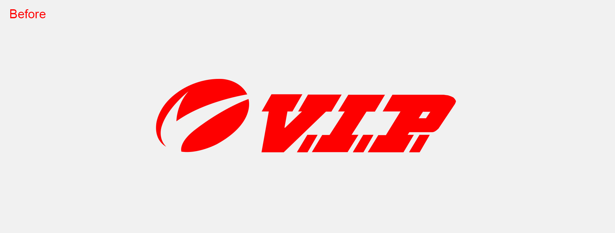 The graphic language takes off from the dynamic slant of the new VIP logo. The patterns of red lines and dashes across the page, emphasize the diagonal, creating a sense of rhythm, forward movement and change.